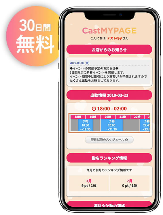 女の子専用のマイページではシフト入力やスケジュール確認、お給料の確認などお仕事をするうえで欠かせない機能を提供しています。